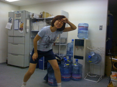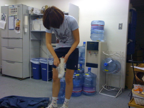 社内に運動会ルックの人がいます。