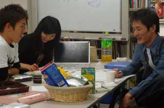 ギリギリミーティング 明日から「ほぼ日」はゴールデンウィーク体制に入ります。 (もちろん、更新は毎日ありますよ) みんな、ただいま最後のひと仕事中ですが、カフェテーブルでギッリギリまでミーティングをしているのはやっぱり、この3人、Tシャツチームの テーブルの上には田口くんの書いた絵コンテが並んでいます。 さっきからシブヤちゃんは、この絵コンテを指さし 「私、この棒グラフが気になるんです。 これは、必須なんですか?!」 と執拗に田口くんに食い下がっています。 絵コンテにはほかにもいろんなアイテムが描かれています。 棒グラフより難易度が高そうな物件があるのになぜ、棒グラフにそんなに注目を‥‥? そんなかんじで、まだまだミーティングは続きそうです。 2009/05/01 21:50 |