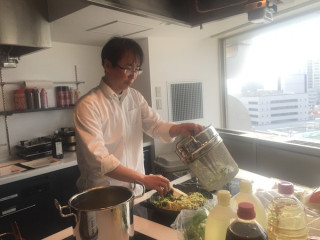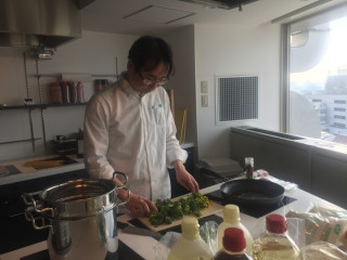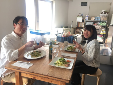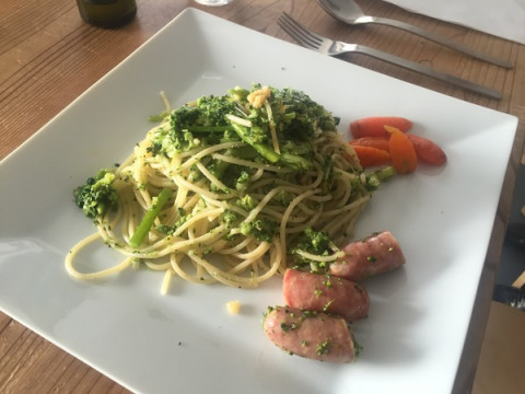 お昼に 「ブロッコリーが安かったから買ってきました。 これでパスタを作りますけど、食べますか?」 と誘ってくれました。 なんとーー。 月曜からそんな贅沢をいいんでしょうか。 以下、作り方を見たとおりに書きます。 大きな鍋にたっぷりの水をはり、沸騰したら細かくしたブロッコリー、パスタ、菜の花の順に投入して一緒に茹で、茹であがったら水気を切って、オリーブオイルをひいたフライパンに移して鷹の爪、塩、胡椒で味付ける。 付け合せはソーセージとベビーキャロット。 柔らかくなったブロッコリーがしっかりパスタと絡んでとてもおいしかったです。 家でもやってみよう、と思いました。 2017/03/13 17:05 |