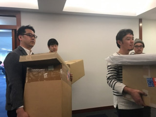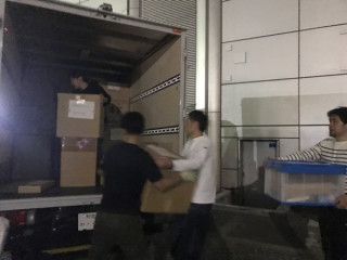 六本木ヒルズに搬入するたくさんの商品や什器やその他いろいろなものを、これからトラックに積みこみます。