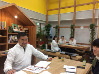 の次回の企画にむけて打ち合わせをしていたところ、隣のテーブルを見ると白、白、白、のシャツを来た