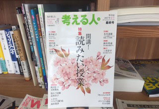 考える人 また会う日まで 何度か登場しておりますが、みなさま改めてはじめまして! 乗組員のハサウェイこと羽佐田です。 菅野隊長より『なにか、気になるものを撮ってこようー!』という御達しをいただきすぐさま駆けつけたのがここです。 ここ、ほぼ日の本棚です。 寄贈いただいた本や乗組員が持ち寄った本がならびます。 四六時中本をよんでいたい私は、ここに立ち寄って本をパラパラめくるのがだいすきな日課です。 今のおすすめは、考える人の最新号です。 そしてこの2017年春号にして最終号となっています。 ほぼ日内でも、悲しい‥‥という声をたくさん聞きました。 昨日は表参道の山陽堂さんで考える人のイベントがありました。 最終回のテーマは、小林秀雄さん。 山陽堂さんが河野編集長におっしゃられた、 「また、会う日まで。」という言葉に涙が出てきてしまいそうになりました。 雑誌は休刊しますが、引き続きウェブでも考える人がよめます! がんばっていこうと、背中を押された会でした。 河野編集長、考える人編集部のみなさまありがとうございました! 2017/04/12 11:26 |