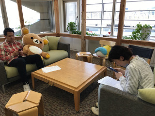 ソファーでは、スガノ先生から製作中のレクタチャーをうけたゴッド、マリリンが初投稿中。