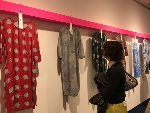 渡邉良重さんツアーのすゝめ 今日はGWの真ん中の日ですね。 働いている方も、おやすみのかたも、こんにちは! 明日2日(火)午前11時より、キギの渡邉良重さんとほぼ日がつくる洋服 「CACUMA」の春夏コレクション第2弾の販売が開始します! 定番人気のワンピースをはじめ、これからの季節にぴったりな2つのアイテムが仲間入りです。 「CACUMA」のお洋服は、白金にあるKIGIさんのお店 「OUR FAVORITE SHOP」 でもお買い求めいただけますよ。 (第2弾のアイテムは 3日からお店で販売予定です。) そして現在、 「OUR FAVORITE SHOP」では、渡邉良重さんの原画展が開催されています! 良重さんの繊細でかわいらしいイラストを生でじーっくり見ることができる、うれしい展示となっております。 さらに!銀座にありますクリエイションギャラリー8では、第19回亀倉雄策賞受賞記念渡邉良重展「絵をつくること」 が開催されています。 (写真3、4枚目) 亀倉雄策賞を受賞した、いちごとチョコレートのお菓子屋さん 「AUDREY」のパッケージをはじめ、良重さんの手がけた作品が勢揃いの本当にすてきな空間となっています。 「CACUMA」のお洋服や、ほぼ日手帳カバーも展示されていて、とってもうれしいです! お立ち寄りの際には、ぜひ探してみてくださいね。 このゴールデンウィークに、渡邉良重さんツアーで都内を巡るのはいかがでしょうか。 おすすめですー! 2017/05/01 12:08 |
