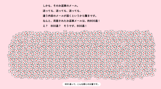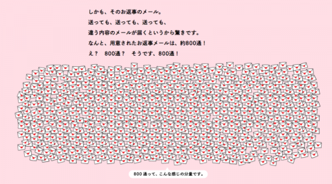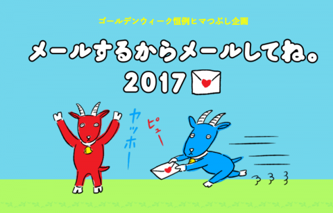 はじまりました! みなさま、連休初日いかがおすごしでしょうか? ほぼ日の連休恒例ヒマつぶし企画、 「メールするからメールしてね」が今日からはじまりました。 この企画はページ上にあるアドレスに空メールを送るとヤギがめえ〜といい声で鳴き、ほぼ日のありとあらゆる乗組員が書いた合計800通のメールからランダムで1通お返事が届くというもの (わたしも10通書きました)。 今朝早速3通ほどメールをしたら、 同僚のふつうのメールを受け取るのって、ちょっと新鮮です。 ちなみにメールボタンを押すときのヤギの鳴き声はハイレゾ録音。 良音です。 これ、スマホをマナーモードにしていてもかまわず鳴きますので、電車内やデート中などお気をつけくださいね。 それでは、お休みの方もそうでない方もどうぞよいGWを。 ヒマになったら、メールしてね! 2017/04/29 15:07 |