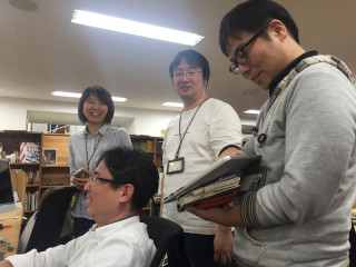 触診中 「どうかな」 「ちょっとふくらんでるかも」 「そうだね」 弊社のシステムチームがノートパソコンを触りながら、何か言い合っています。 「何やってるんですか」 「触って、バッテリーがふくらんでないかチェックしてるんです」 うわー。 つまり、触診!? 「知らなかったですか? バッテリーが膨張すると、危険なんですよ」 知らなかった‥‥。 しかし、こうやってパソコンをみんなで触っている様子というのは、患者をみるドクターたちのようで、いいですね。 わたしも触らせてもらいました。 2017/05/16 15:59 |