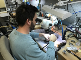 ロンドンからの写真 さきほど 「イセキアヤコさんのジュエリーのお店」 のミーティングでした。 6月に新作ジュエリーを販売するのでその内容を話し合っていたのです。 2、3枚目の写真は、ロンドンのイセキさんから届いたもの。 ダイヤモンドをセッティングするセッターさんの工房で撮ったそうです。 ちょうどイセキさんからのコメントも届きましたので、ご紹介します! ーーーーーーー ロンドンの宝飾街、ハットンガーデンの工房にて。 「イセキアヤコさんのジュエリーのお店」は新商品の制作真っ只中です。 こちらは、貴金属に宝石を埋め込む作業を担当してくださっている職人さん。 ストーンセッターと呼ばれる職業です。 なんと今年ロンドンで行われたセッターの技術コンペティションでは銀賞を受賞されたほどの腕前! 彼の美しいダイヤモンド・セッティングは6月発売の新作ブローチでご覧いただけますのでお楽しみに。 イセキ ーーーーーーー ということで、みなさまお楽しみに〜! 2017/05/26 15:49 |