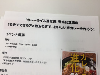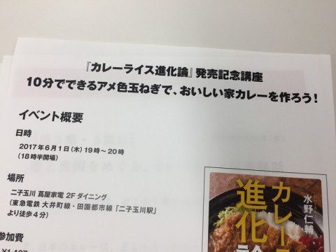 もう若干名、募集中! 今日は、水野仁輔さんとほぼ日の 「カレーの学校」、第3期の5回目の授業の日。 ただいま、ほぼ日の大ホールにぞくぞく生徒のみなさんが集まりつつあります。 (みなさん今日もたのしそう!) そして今日は「カレーの学校」つながりで、いろいろと手伝ってくれているイースト・プレスの大田さんから、ちょっとしたお知らせが。 大田さん 「明日、東京・二子玉川の蔦屋家電で水野仁輔さんによるアメ色玉ねぎのイベントがあります! ずいぶん埋まっているのですが、あと10名弱ほど入れるので、二子玉川近辺のみなさん、いかがでしょうか。 せっかくの機会なので、よければ蔦屋家電のWebサイトからお申し込みいただけたら嬉しいです!」 こちらは水野さんがアメ色玉ねぎの作り方を直接伝授してくださるほか、 「アメ色玉ねぎなしのカレー」と 「アメ色玉ねぎありのカレー」の食べ比べもできるというなかなかぜいたくなイベント。 家でおいしいカレーを作りたいみなさん、よかったらチェックしてみてくださいね〜。 ================== 「10分でできるアメ色玉ねぎで、おいしいカレーを作ろう!」 日時:2017年6月1日(木)19〜20時 (18時半開場) 場所:二子玉川 蔦屋家電 2Fダイニング参加費:1407円(書籍『カレーライス進化論』、ミニカレーつき) <詳細はこちらからどうぞ> ================== 2017/05/31 19:23 |