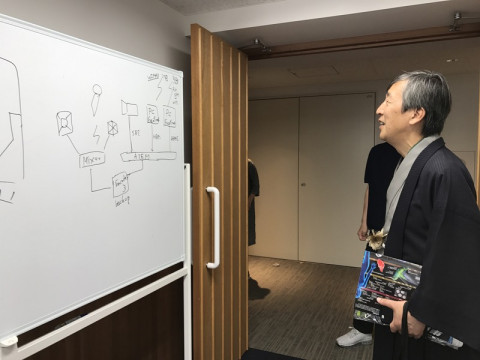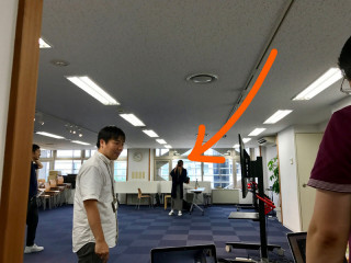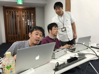 リハーサル 今日はサイエンスフェロー 明日の11時にあるコンテンツが発表されるですが、そのなかでなんのことかわかると思いますので、たのしみにしていてください。 フェローは私たちがカメラで撮ると、必ず撮り返してきます (2枚めの写真)。オチャメです。 本番では、私たちは中継の「受け」側で、 中継班はACも使わないのでなんとライトなセッティングだこと! 身軽すぎでしょ〜。なんかうらやましい! 本番、うまくいくかなぁ。 システム部は最後までもめておりました。 フェローは、部屋の出口にあった中継の配線図を書いたホワイトボードの前で足をとめていました。 「ふむふむ」 こういう図が気になるんですね、フェロー。 2017/06/01 16:42 |