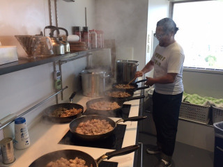 リーダーの手によって、肉もじゅうじゅう焼かれています。