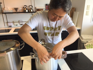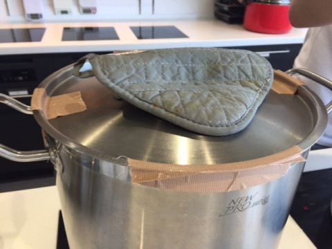 さて、こぼれないように鍋の蓋をしっかり固定して‥‥運びます!