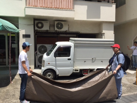 そしてビニールシートを敷いたりして準備します。