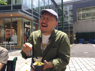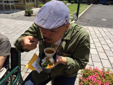 今日、急遽車を運転してくれたイサワにもお礼として水野さんのカレーをまかない提供。