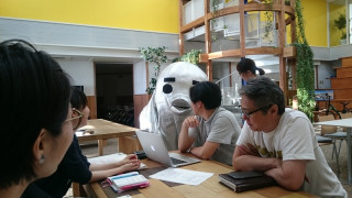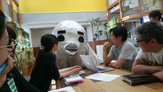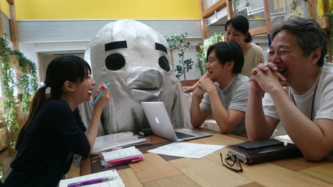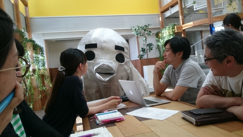 ほぼ日ストアとカスタマーリレーションズの合同ミーティングをしていたら、なにかのスタンバイをしていたシジュちゃんが現れました。