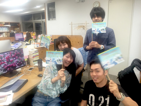 明日はいよいよ! 今日は創刊記念日の前日です。 しかも、もう夜です。 ティッシュ配りの際に着るジャンパーのチェックに余念がない者、旗作りにはげんでいる者、さまざまです。 オフィスはこんな様子ですが、TOBICHIでリハーサルをしている乗組員たちはなんだかすごく大変そうです。 (という情報のみ入ってます) システムチームの 余裕そうにピースしてますけど、これはピースではありません。 これは 「我々は2ザイクスである」の合図。 わたしもこの2人と同級生なので、今年で2ザイクスです。 ※ザイクスとはなんぞや、と思われた方は こちらの予告動画をご覧ください。 明日は、東京と京都から動画&テキスト中継しますよ。 おたのしみにー! 2017/06/05 20:27 |