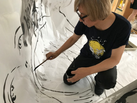 TOBICHI2では、17時まで、しりあがり寿さんのライブペインティングをおこなっています。