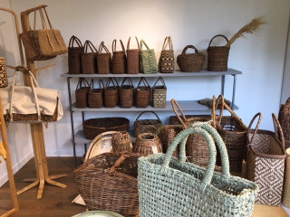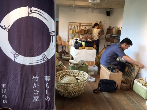 市川商店、設営中です! 6月9日(金)からTOBICHI2ではじまる 「たけ あけび ぶどう くるみ いぐさのかごや どうぐや 市川商店」 。 ただいま設営中です。 TOBICHI2が、かご、ざる、み などでいっぱいになります! ここに写っているのはまだまだ一部の商品です。 夏にぴったりのかごバッグもたくさんありますよ。 大高が手に持っているのは、すいか用のかごです。 これは欲しい! ぜひぜひ、お買い物に来てくださいね。 今日から連載開始した店主市川さんの「竹籠屋五代目奮闘記」もぜひお読みください。 2017/06/07 16:01 |