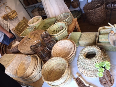 すごい数のかご、ざる、バックなどが並んでいます。