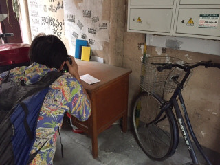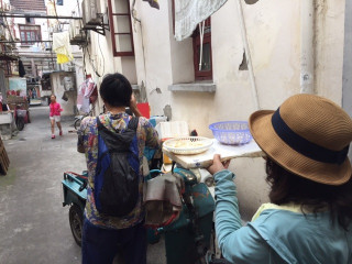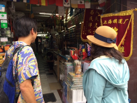 カメラマンのエリックと中国語が話せる邱さんと一緒に、上海の街中でほぼ日手帳の撮影中です。