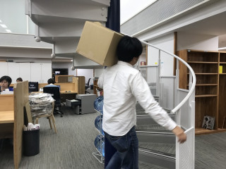 人たち 席替えのための移動もほぼ終わりました。 席がスッキリして気持ちいい! 今回の席替えは、座席の増設工事が入るので、みんな自分の荷物をダンボール2箱につめて移動することになっています。 ですので「移動だけ」をすればいいふだんの席替えよりもちょっぴりハード。 しかし、ほとんどの乗組員がこの時間に作業を終えています。 でも‥‥まだまったく手をつけていない 「ゼロポイント」の人たちもいます。 やまかわは、 「帰るまでにやればいいんですよね?」 となぜか余裕の表情。 開き直ってる‥‥? そして、大黒幕の 「手をつけてないわけじゃないんです。 これでもけっこう、整理できてるんですから」 荷物を掘り起こしすぎてゼロよりマイナスに行ってる気がします。 2017/06/09 20:09 |
