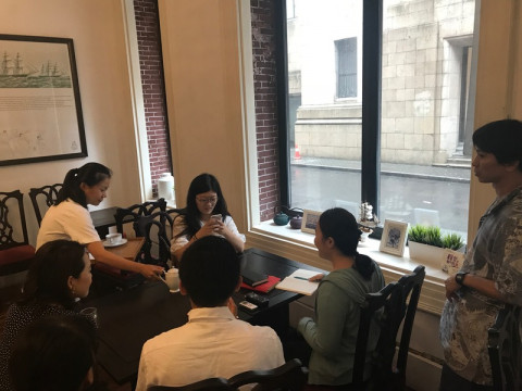 外灘というかつて租界があったエリアのカフェで中国の手帳ユーザーの方々にお話を伺っています。