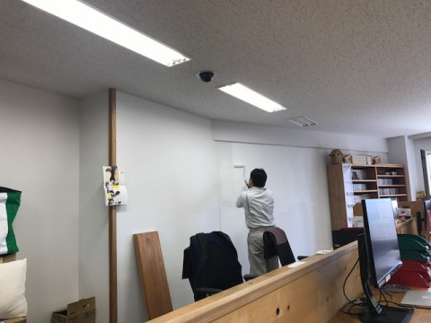 なごりで、棚を動かした後の壁を塗ってくださっています。