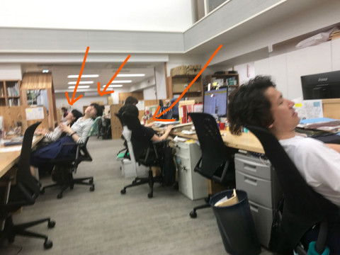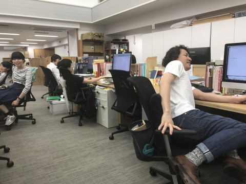 姿勢のこと すると、 「ああ、疲れた」 というので、張りついている私はコラー! と思ったのですが、そういえば、昔 それが耳に入った後ろにいるノリのいい若手のみなさんも一気にその姿勢をしていました。 きっと今後の参考にしたかったのでしょう。 「おれ、そんなんだっけ?」 と、永田がやってきました。 「そうですよ、こんなふうに椅子に足をあげたまま原稿書いたりしてましたよ」 いま、永田をはじめとして、そんな姿勢を取る人はほぼ日にはいません。 みんなきちんとなってよかったです。 2017/06/15 20:01 |