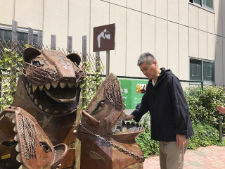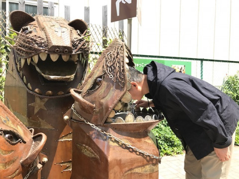 この水飲み場は、虎舞にあたまをたべられたように水を飲めるのです。