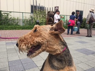 カメラを向けると視線をずらすのが得意という、エアデールテリアのせいちゃん。