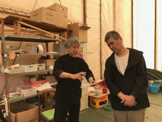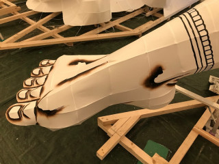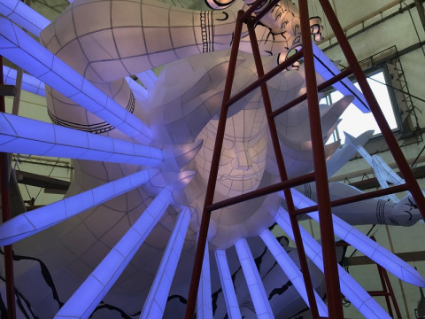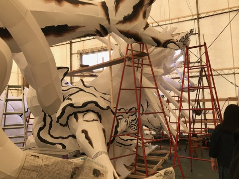 途中のねぶた。 なんと、いま絶賛製作中のねぶたの現場を見学させていただきました。 こここりは〜〜〜〜。 針金と、障子紙で作られ、まだ色を塗っていないけど、線を描きはじめた状態です。 こちらが、去年のねぶた大賞の竹浪先生。 「もともとは竹を使っていたけど、それが針金になり、灯籠だったから、蝋燭だったのが電球になって、いまではLEDになり、そうやって新しいものを取り入れていいのが、ねぶたなんですよ。 終わったら、解体しますしね。 鏡餅とかと同じように、次の年に持ち越さないのも、おもしろいところなんです」 と。 へええええ。すっごいなああああ。 2017/06/19 20:47 |