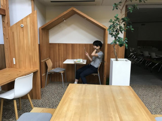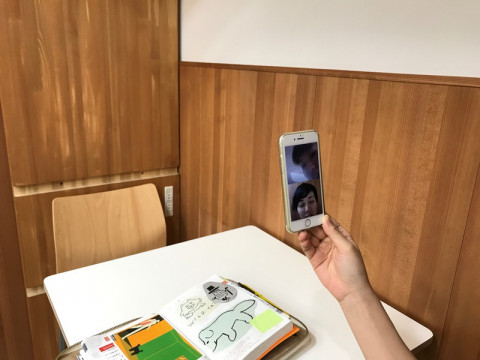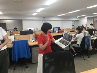 さんが、カナダにお住まいの方と会議の前にパソコン片手に社内を案内していました。