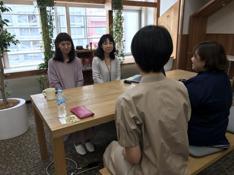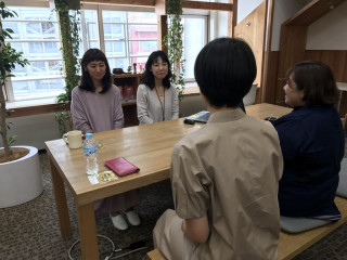 弊社総務受付まわりのファッションリーダーさんたちがぼんやりした色の服を揃って着ている。