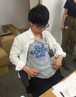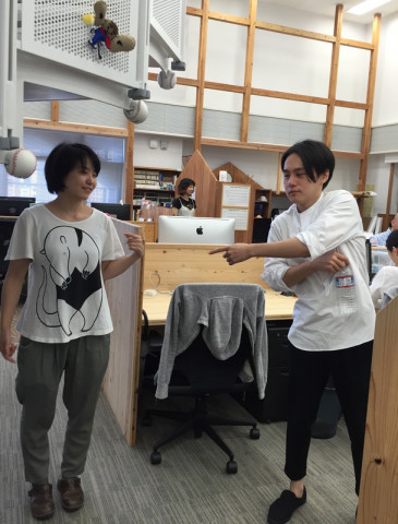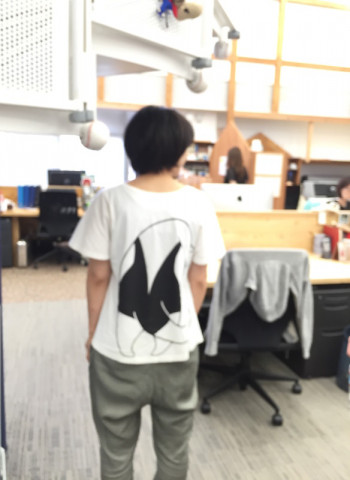 みんなのTシャツ 先月から手帳チームのお手伝いに来てくれているオータキくんが、おもしろいTシャツを着ていました。 好きなキャラクターなんだそうです。 オータキくんのこと、まだまだ何も知らないですが、きっとおもしろい人なのだと思います。 しかしパンチのあるTシャツですね。 そんなことを話していたら、螺旋階段から、 それはなに‥‥? 「え、上野動物園のアリクイだよ?」 そうですか。 後ろをむくと、アリクイも後ろをむくんですね。 すると近くにいた 「今日のカッツミーがシャツの中に着ているTシャツもなかなかですよ。 見に行きましょう」 と誘ってくれました。 シャツを脱いで見せてもらいましたが、たしかに、インパクトがある。 でもなんで 夏はみんなのTシャツウォッチングがたのしいです。 2017/07/11 18:36 |