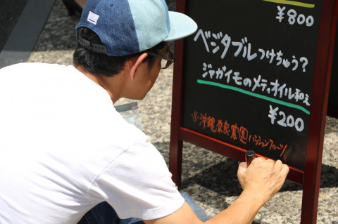 オープンしました! さきほど「カレーの車」、ぶじに南青山のいつもの場所につきまして、オープンしました! (そして、オープンと同時に列が‥‥。 来てくださったみなさま、ありがとうございます!) また、表の看板には、水野さんが手書きで 「パッションフルーツ×カルダモン」 と書いてくれました。 ちなみに今日のパッションフルーツは、水野さんとリーダーが先週末、イベントのために出かけていた沖縄の奈良農園のものだそうです。 そして、これは裏側の話ですが、今日はもうひとつ、いつもと違うやりかたをしています。 実はカレーの車は将来に向けていろいろな実験をしているのですが、今日は 「2人だけでまわしてみたらどうなるだろう?」 という実験の日。 ということで、オープンを手伝ったのち、 ですので、ただいま車にいるのは、水野さんとリーダーふたり。 きっと大丈夫だと思いますが、 (ぼくらもときどき覗きにいきます) もしかしたらちょっとカレーの提供などに時間がかかってしまうかもしれません‥‥。 なにとぞご容赦いただけますと幸いです。 ただ、カレーの味は間違いないので、そこは安心していただけたらと! どうぞ、よろしくおねがいいたします〜。 2017/07/13 11:30 |