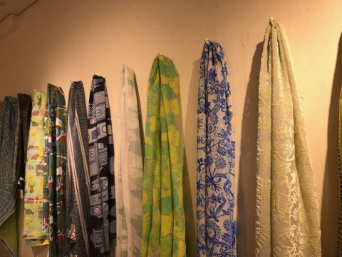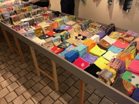 海の中より えー、こちら、海の中です。 本日より、TOBICHI2でひびのこづえさんの展覧会がはじまりました。 二階がすごいことに! いままで使った衣装や布を使って作った一点ものの作品が、たくさん並んでいます。 かきわけて、泳いで奥まで入ってください。 奥では、急遽スタートしたアトリエスタッフさんのミシンコーナー。 目の前で、見ることができます。 一階では、 「生活のたのしみ展ウェブストア」でも販売中の、ひびのさんが20年ほど作り続けているたくさんのハンカチが、じゃじゃーんと並んでいます。 冷房が肌寒い時にちょうどよさそうな、うすでのストールや、扇子、水うちわも。 ハンカチ、アクセサリーは 「たのしみ展ウェブストア」にもありますので、遠方でいらっしゃれない方やご都合が合わない方は、そちらも見てみてくださーい。 2017/07/13 16:40 |