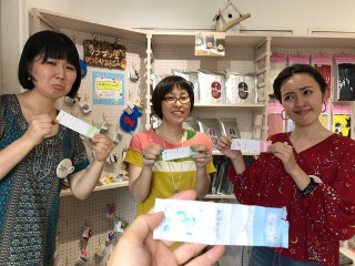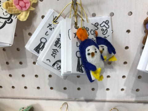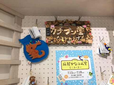 同時開催、かなぶん堂! 数週間前に、開催していた床屋かなぶんさんによる、床屋かなぶん堂。 前回は京都進出もしました。 ひびのさんが「海のいきもの」をテーマとしているので、かなぶんさんも海のいきものを作ってくださいましたよ! (ひびのさんと、かなぶんさんはテレビ番組「にほんごであそぼ」をいっしょに作っているお仲間なのです) レジ横がとても、にぎやか! ちょうど来ていたご本人にも会えました。 どういうわけか、突然わたしたちに 「点取占い」をくれた、かなぶんさん。 わたしだけ10点で、みんなはぼちぼち。 微妙な表情を浮かべています。 暑いので、TOBICHIとTOBICHI2にいらっしゃる方は、涼んでなごんでってくださいねー。 2017/07/13 16:47 |