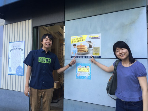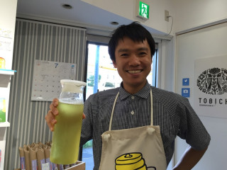 冷たいお茶を。 今日は続々と乗組員がTOBICHIへ行ってますね。 ものすごい暑さなので、着いたらすぐ 水だし茶の試飲をすすめてくれました。 つめたくておいしい。 なかしまさんが焼いてくださったホットケーキは、表面がさくっとして、全粒粉がぷちぷちして、おいしかったです。 TOBICHI2ではひびのさんのハンカチ (コウモリ柄!)を買いました。 試食会は明日も12〜18時までやってます。 ぜひ行ってみてくださいねー。 2017/07/14 17:26 |