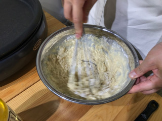 なかしましほさん駆けつけざまホットケーキを焼き始めました。