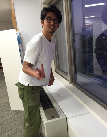 がエアコンの風をおなかにあてて涼んでいました‥‥。