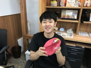 社内のどこに空気入れがあるかちょっとわからないのですが、ものの数分で、ふくらませて持ってきてくれました。