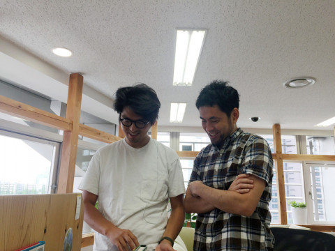 かわいい動画を見ています。 「見て、これ、すごい良いでしょ」 (にやにやにやにや) 「お、うわ、いいーーーー!!」 (にこにこにこにこ) コジャといえば、 「ほぼ日のアースボール」のチームリーダー。 もしや、アースボールチームで何かグッドニュースでもあったの? 「そうなんです! ぼくら、いま、すごーーくかわいいアースボールの動画を見ているんです」 「まだお見せできないんですが、こんな感じですよ。 (頬に手をあてて高い声で) かわいーーーーーー!!」 ‥‥おおお、気になる! ひそかにメンバーがものすごく動きまくっている 「ほぼ日のアースボール」チーム。 発表できるのは秋かな、なんて噂も聞こえてきています。 発表できる状態になったら、ふたりとも、ぜひぜひ動画、みせてくださいねーーー。 「もちろん!」 2017/07/31 11:39 |