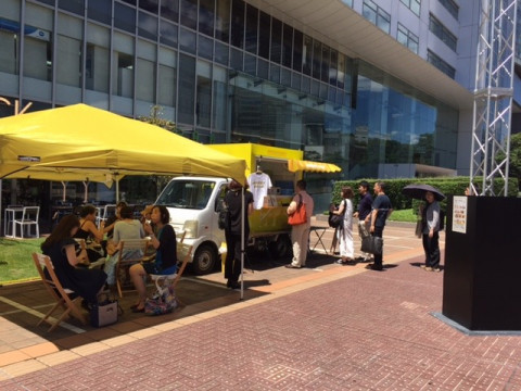 カレーの車、営業中! 新宿にいる「カレーの車」、カンカン照りのなか、元気に営業中。 新宿サザンテラスで14時頃まで営業中です。 今日は日差しがすごいので、日傘のかたもけっこういらっしゃいます。 テントスペースも作りましたが、並ぶときにはどうしても日なたになってしまいますので、ぜひ暑さ対策をしていらしてくださいね。 ちなみに今日のカレーの車はほぼ日・イサワも手伝ってくれています。 「暑いけど、おもしろいねー」とのこと。 ほんと、夏のちょっとしたお祭りみたいでたのしいです。 2017/08/09 12:24 |
