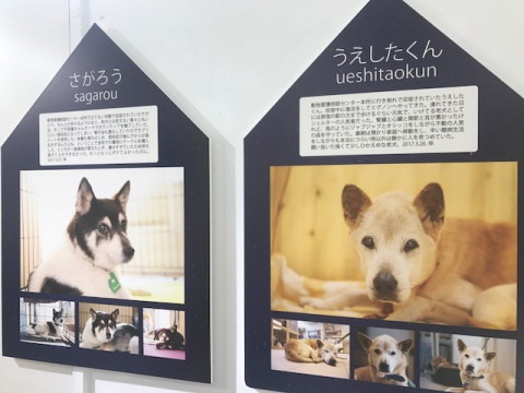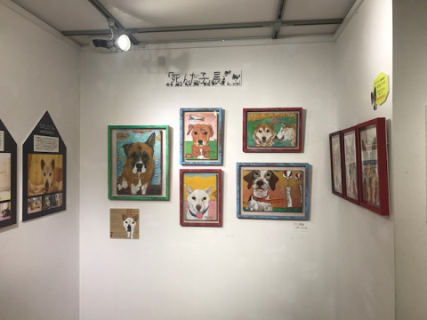 ミグノンの保護動物の写真展、絵画展、チャリティーグッズや、いぬねこのおやつがあります。