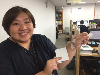 ラインナッププレビュー! 明日8/19から、TOBICHI 2、TOBICHI京都でほぼ日手帳2018の ラインナッププレビューがはじまります。 2018年版の手帳を手にとってじっくり見ていただけますよ。 会場におこしのかたにプレゼントするのが2018年版の手帳カバー柄ばんそうこうです。 (写真2枚め) 近くにいた 「わたしばんそうこう大好きなの! だからぜったいTOBICHI2に行こうと思ってた」 と力説してくれました。 ちょうど犬とじゃれて手に傷がある、ということで特別にひとつ進呈。 「わーどれ使おう、迷う〜」とかなり迷ったすえ、 A VERY MERRY EVERY DAY to you のくまを手に貼って笑顔! 手帳カバーにばんそうこうが入っているとなにかとべんりですよ。 みなさんもぜひこの週末、ラインナッププレビューへ! ぜひ、かわいいばんそうこうをもらって帰ってください。 2017/08/18 18:17 |