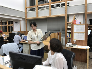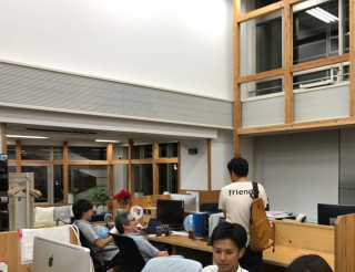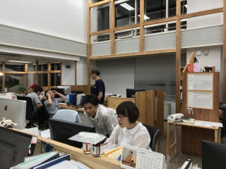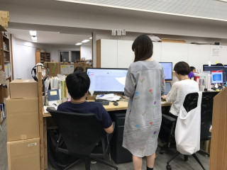 相談タイム 今日の「今日のダーリン」は雑談がテーマでした。 ほぼ日では、みんなよく雑談をするのですが、雑談でも打ち合わせでもない、その中間の「相談」スタイルで話をしている人もけっこういます。 こうやって、誰かの席に近寄っていって 「いま、いいですか?」と話しかけます。 ですから、一方が立って、一方が座っていることが多い。 そして、この「相談」を、長い人は1時間くらいやっているのです。 話している内容は、もちろん仕事のことなんですが、聞き耳を立てているといろいろと脱線しています。 そして、この「相談」のいいところのひとつは、その話が耳に入ったぜんぜん別の人が口を出したりすることです。 もっと緊急を要する相談のある人は前の相談に割って入って話してもよいのです。 いまこのときもたくさんの場所で 「相談」が発生しています。 2017/08/22 20:36 |