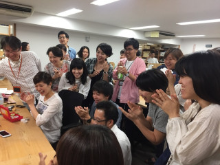社長の勇姿 「キャーーーーッ!」 という、聞きなれない嬌声が弊社の一角でとつぜん起きまして、なにかと思ったら、まさにいま (写真1枚目/一瞬で集まった弊社のお調子者軍団たち) うおーーー、始球式! 小さい画面からも緊張と、喜びが伝わってきて、みんなで息を止めて見守ります。 あ、投げた‥‥ ‥‥うまくいった! 「よかったーーー!」 というわけで、大きな拍手が起きました。 いやはやいやはや。 「泣けるー」と誰かがいいました。 大げさなようですが、ちょっとだけわかる気が。 なんといっても、始球式ですから。 ‥‥以上、ほんじついちばん社内が緊張&盛り上がった時間のご報告でございました。 ( 2017/09/06 18:10 |