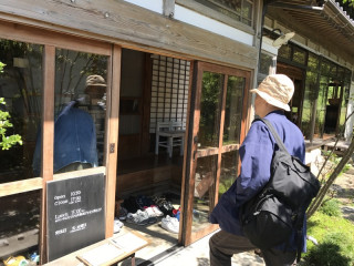 ツリーハウスから階段を降りていくと古民家風のカフェ、はまぐり堂につきました。