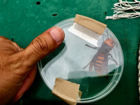 ミツバチとのふれあい 本日、わたしたち(太田、田口、菅野)は東北の、ある街に来ています。 そこで、昼からずっと、いままでにないほどの数のミツバチを見、そして、ふれあいました。 最初はおそるおそるでしたが、いまじゃ、ハチがかわいくてたまりません。 さわるとあったかいんですよ、ハチ。 途中、養蜂家の方が、 「ふんっ」といって虫取り網を振る瞬間があって、なにごとかと思ったら、 「オオスズメバチがいたんですよ」 と。 ミツバチの天敵なんですね。 生きたまま捕獲。 その前に、そんなに虫取りが得意な人を見たことがなかったのでほんとうに驚く。 オオスズメバチは田口くんの親指くらいあって、そんなこんなでほかにもいろんなことがあって、はじめての体験が多すぎて、いま、頭と心がぱんぱんにふくれています。 明日も出張が続きますが、がんばります。 2017/09/11 18:01 |