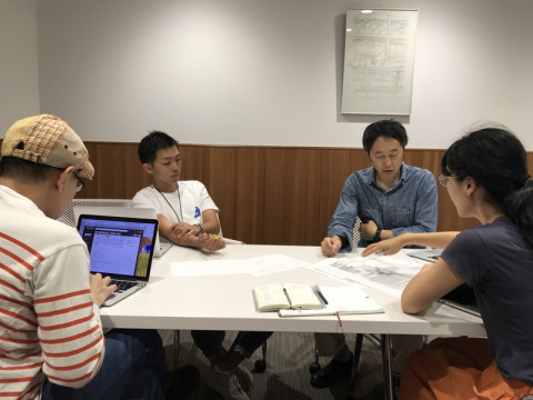 テキスト中継は全員がいたしますが、写真は、「しっかりする役」の4人が打ち合わせをしているところです。