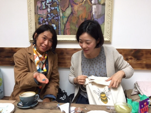 イセキアヤコさんに会えました ロンドンで買い付け中の三國万里子さんとわたくし。 今日はヴィンテージフェアで、ほぼ日での連載でおなじみの、イセキアヤコさんにお会いしましたよ。 2歳のお嬢さんを連れての生買い付けを初目撃でしたが、おんなじ会場にずっといたはずなのに、どこにそんなのありました?? と驚くような、イセキさんらしいジュエリーをたくさん買っていらっしゃいました。 人が選ぶものっておもしろいです。 カフェでお互いの成果を讃え中。 2017/09/18 07:33 |